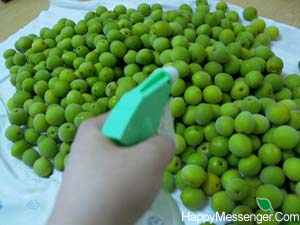 3)상처가 난 매실을 다 골라낸 다음, 깨끗이 씻었어요.