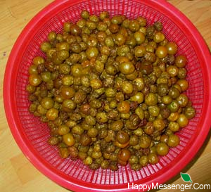 쪼그라든 매실이 칼로는 잘 벗겨지지가 않습니다.